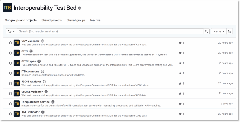 Η Ευρωπαϊκή Επιτροπή, αναγνωρίζοντας τη σημασία της διάθεσης λογισμικού ανοικτού κώδικα, δημιούργησε το 2022 την υπηρεσία code.europa.eu ως εναλλακτική στο GitHub για τα ευρωπαϊκά θεσμικά όργανα. Από τον Αύγουστο του 2025, η ITB διαθέτει σε αυτήν τα βασικά της αποθετήρια, μεταξύ των οποίων το λογισμικό GITB Test Bed και οι επικυρωτές XML, RDF, JSON και CSV.