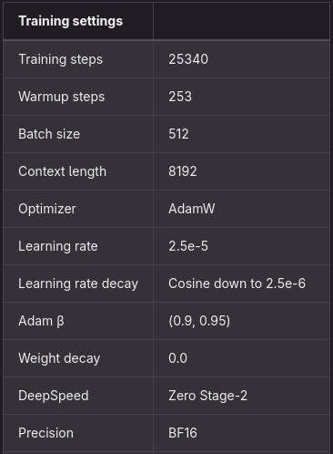 Το μοντέλο εκπαιδεύεται στις οδηγίες που προκύπτουν με τη χρήση εποπτευόμενου μικροσυντονισμού (SFT). Η διαδικασία SFT βασίζεται στις τελειοποιημένες μεθόδους που παρέχονται από το Hugging Face: