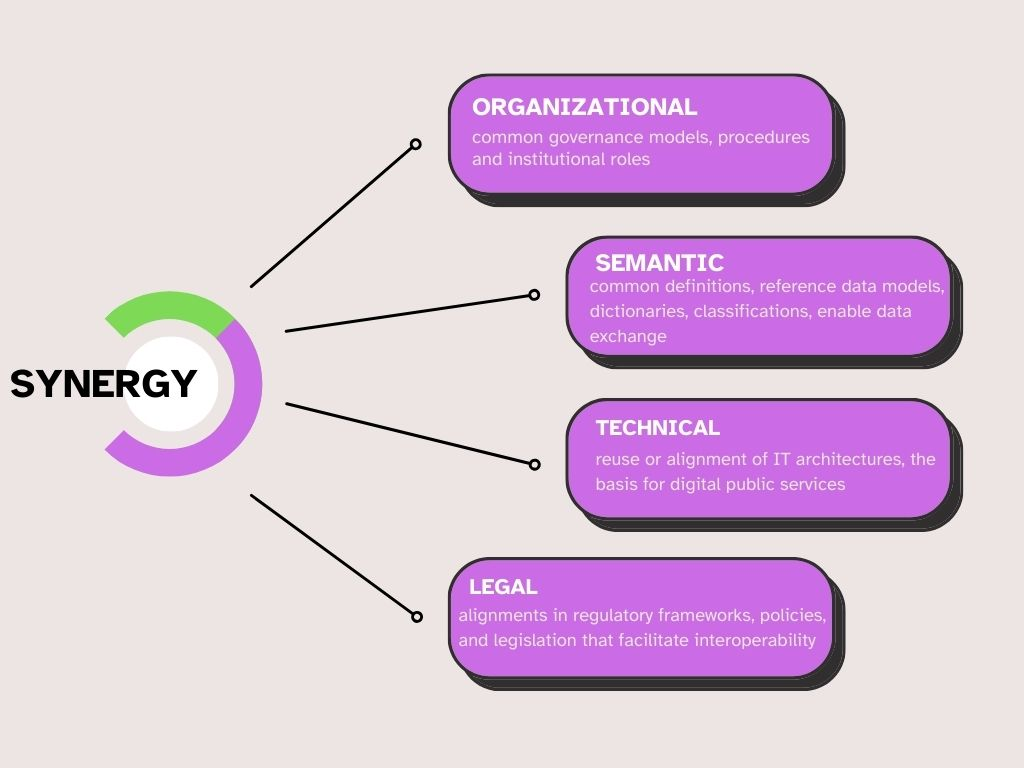Η καταγραφή, σύγκριση και διασύνδεση εθνικών και ευρωπαϊκών πρωτοβουλιών αναδεικνύει ότι η διαλειτουργικότητα δεν αποτελεί μεμονωμένη προσπάθεια, αλλά είναι αποτέλεσμα πολλών, συντονισμένων ενεργειών. Η αναγνώριση συνεργειών μας επιτρέπει να κατανοήσουμε καλύτερα πώς διαφορετικές δράσεις λειτουργούν συμπληρωματικά, ενισχύοντας τη βιωσιμότητα και την επεκτασιμότητα των δημόσιων υπηρεσιών – ιδίως σε διασυνοριακό και πανευρωπαϊκό επίπεδο.