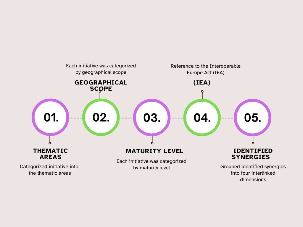 Κάθε πρωτοβουλία χαρτογραφήθηκε σε σχέση με τα τέσσερα βασικά στοιχεία του Κανονισμού για τη Διαλειτουργικότητα στην Ευρώπη (Interoperable Europe Act):